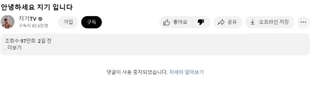 이후 지기 tv 영상 댓글에 학폭 관련해서 많은 댓글이 달리자 운지기는 곧바로 댓글을 막아버립니다.