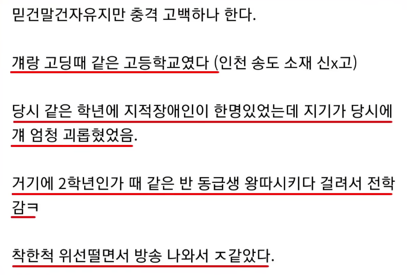 본인은 학폭을 한 적이 없다고 주장하는데 좀 이상하죠.