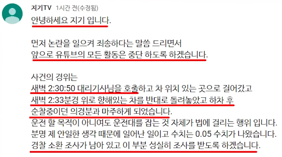 며칠뒤에 있을 경찰 출석 조사 성실하게 잘 받고 결과는 유튜브에 꼭 공지하도록 하겠습니다.