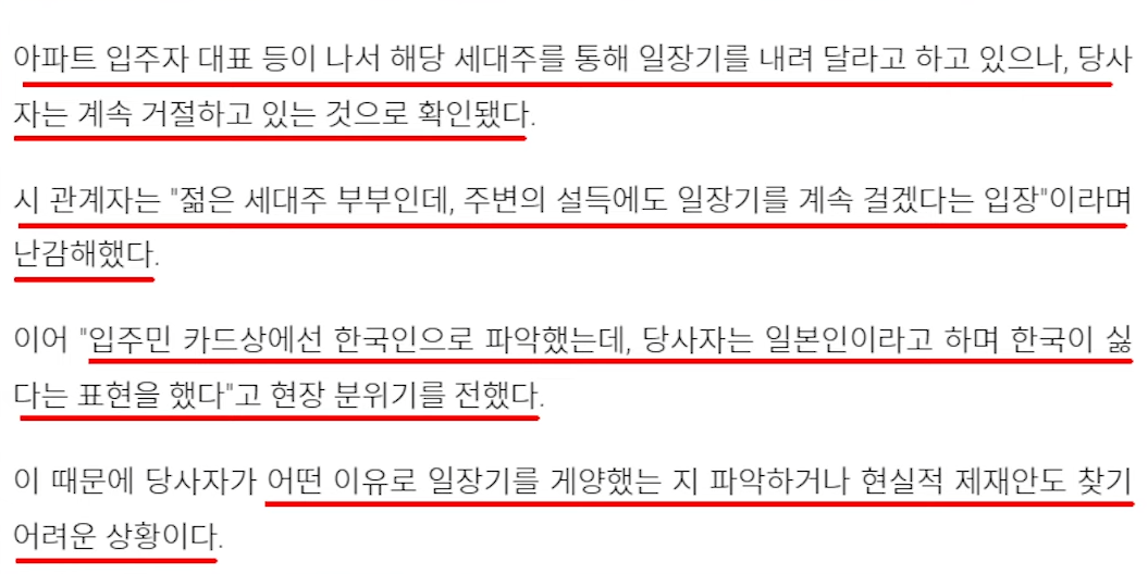심지어 입주민 카드상 일본인이 아니라 한국인이라고 합니다 ..