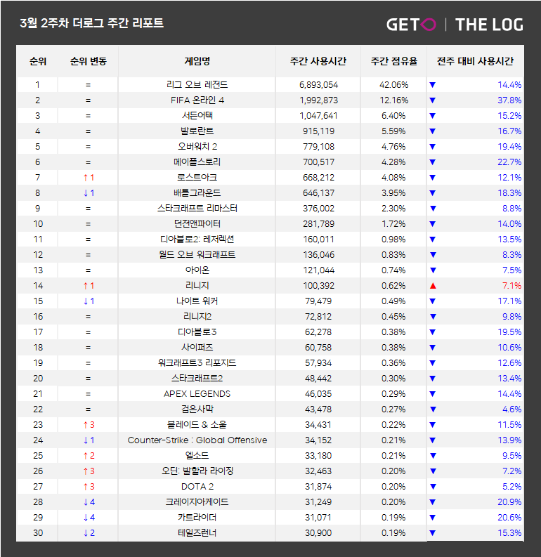 ■ 국내 PC방 순위 - 3월 2주 PC방 주간 리포트