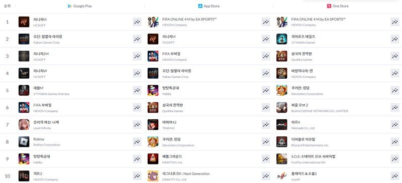 국내 모바일 게임 순위