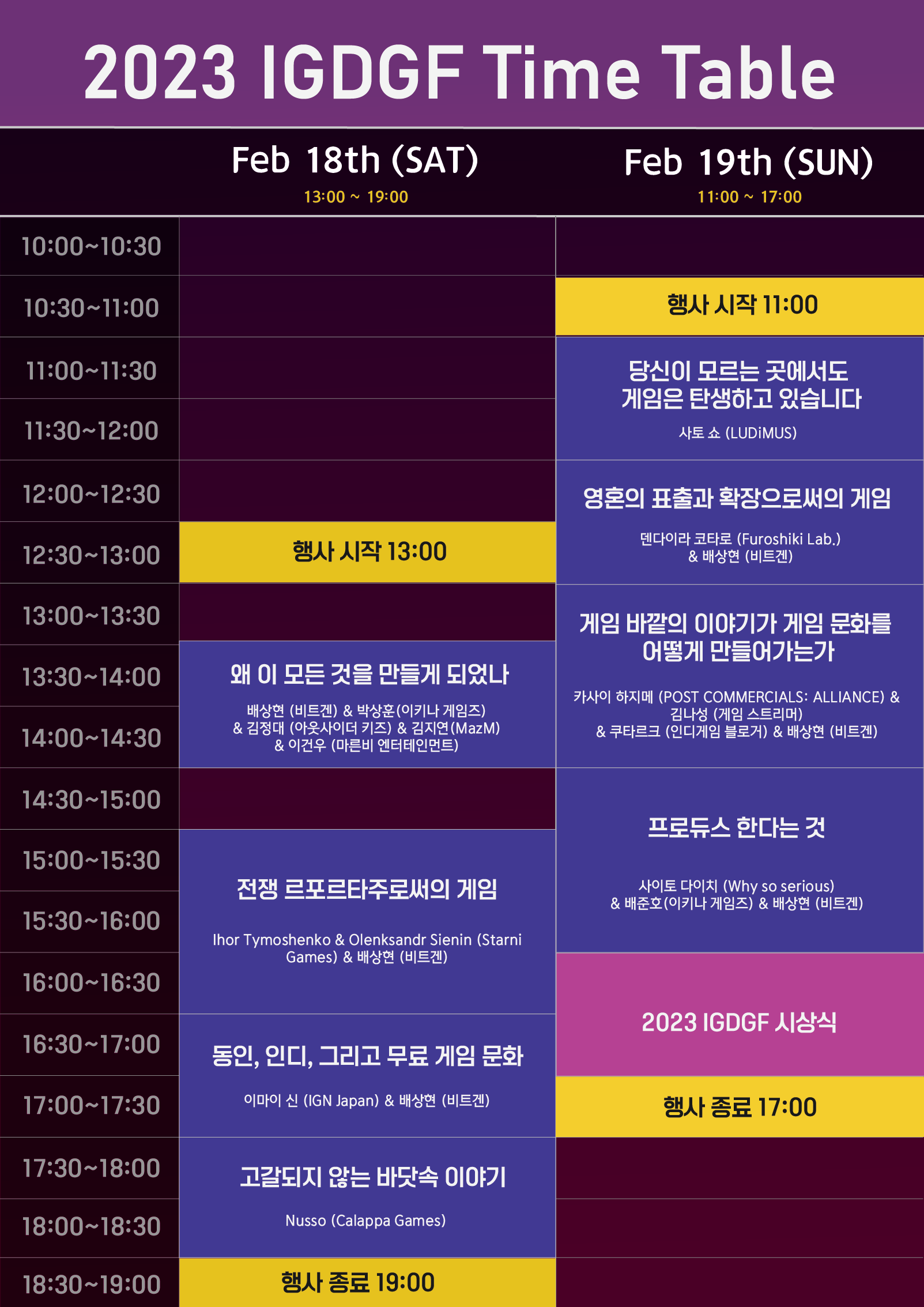 Independent Game Developers Guild(이하 IGDG)는 세계 최초의 작가주의 인디게임 페스티벌을 표방하는 '2023 IGDGF'를 2월 18일과 19일 양일간 서울 충무로에서 오프라인으로 개최한다고 합니다