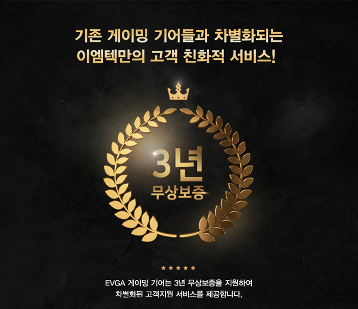 - EVGA 게이밍 기어 시리즈 업계 최장 무상 품질보증 3년으로 제품의 자신감 비춰