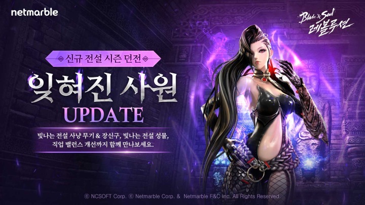 넷마블(대표 권영식, 도기욱)은 모바일 MMORPG '블레이드 & 소울 레볼루션(개발사 넷마블에프앤씨)’에 신규 시즌 던전 ‘잊혀진 사원’을 추가하는 등 업데이트를 실시했다고 23일 밝혔다.