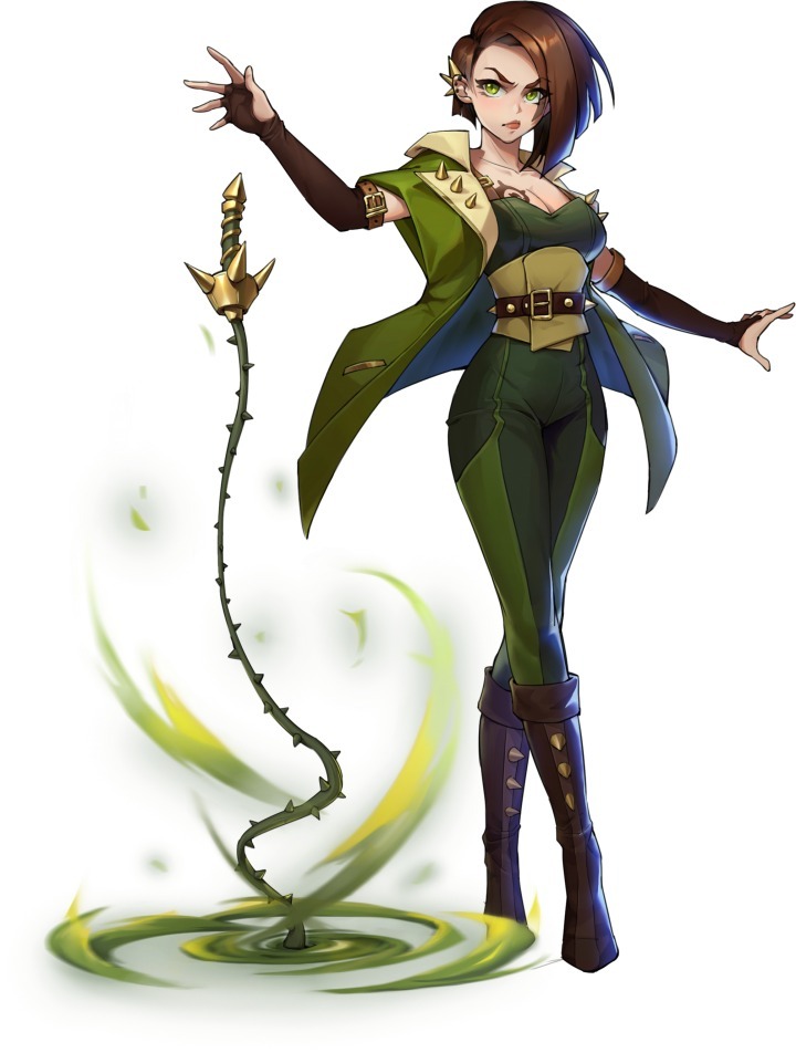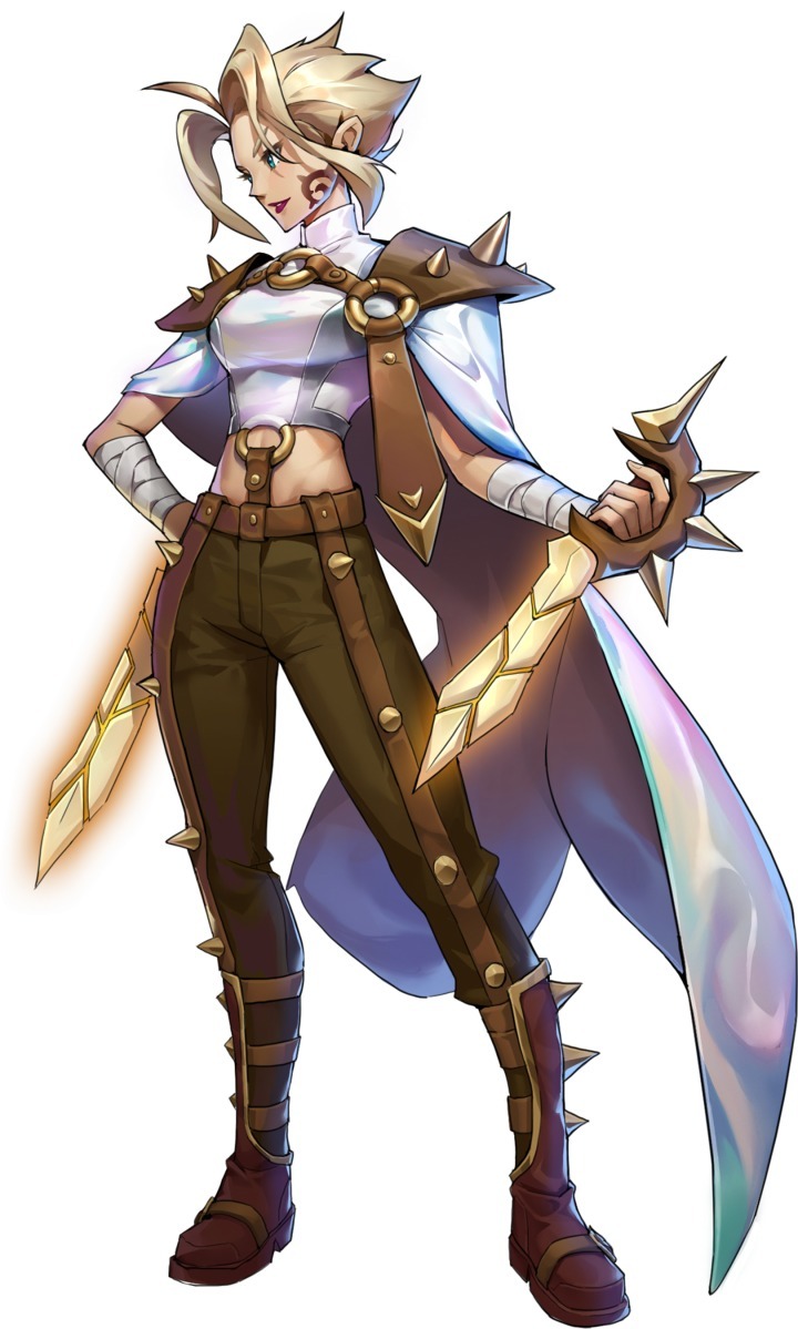 사용하는 무기는 다기능 레이피어 ‘미르텐아스터’이며 마법진을 구사하는 셈블런스를 소유하고 있다.