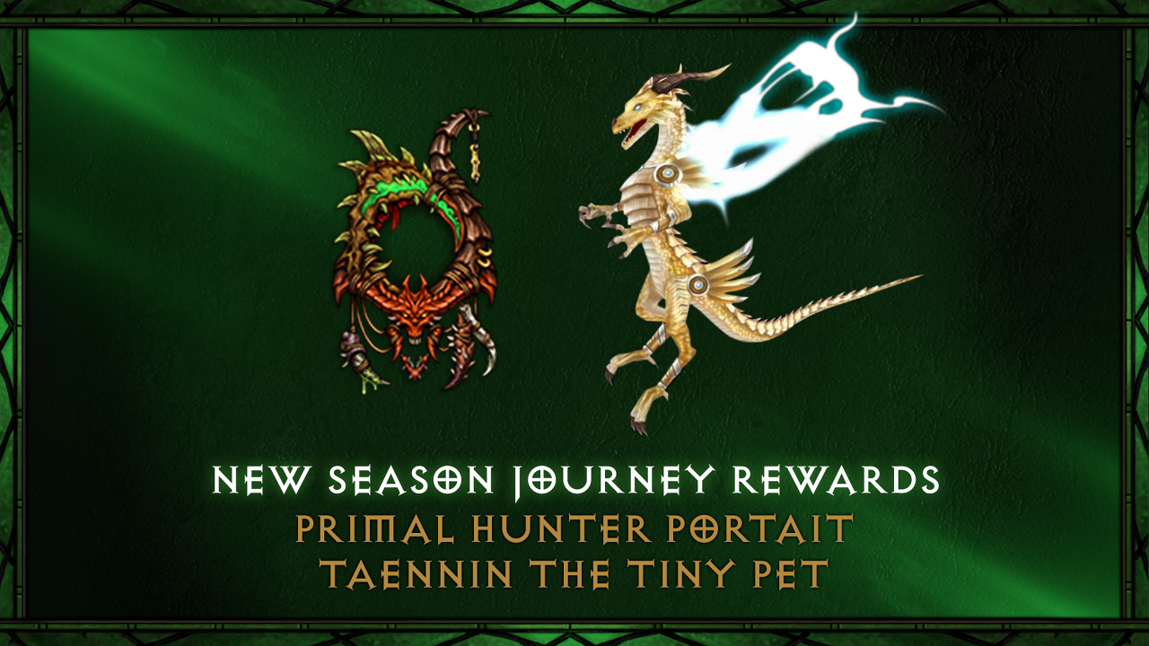 28 시즌에서는 지난 16시즌에 주어졌던 시즌 꾸미기 보상을 다시 받을 수 있게 됐다. 고유 정복자 세트의 투구와 어깨 쓸롯 외에도 신규 초상화 장식을 얻을 수 있으며, 꾸미기 아이템을 열심히 수집하는 이들을 위해 특별한 아이템인 '렘포의 날개'도 제공될 예정이다. 순수한 빛의 물결이 인상적인 '타에닌' 애완동물, 그리고 원시 사냥꾼 초상화로 구성된 시즌 종료 꾸미기 보상도 함께 공개됐다.