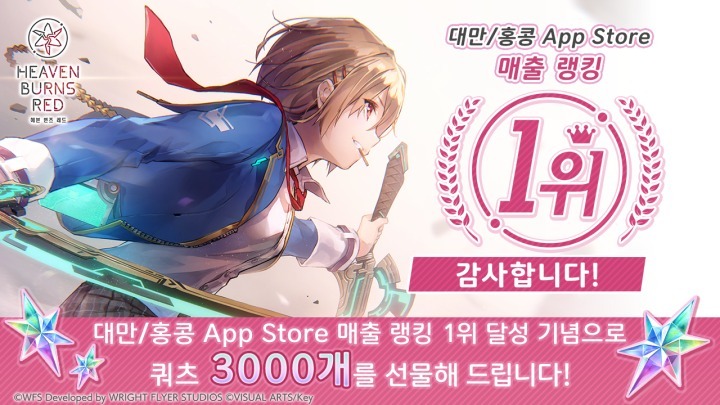 Wright Flyer Studios × Key가 선사하는 드라마틱 RPG [헤븐 번즈 레드]가 2023년 2월 24일(금)에 대만/홍콩의 App Store에서 매출 랭킹 1위를 처음으로 달성하였습니다.